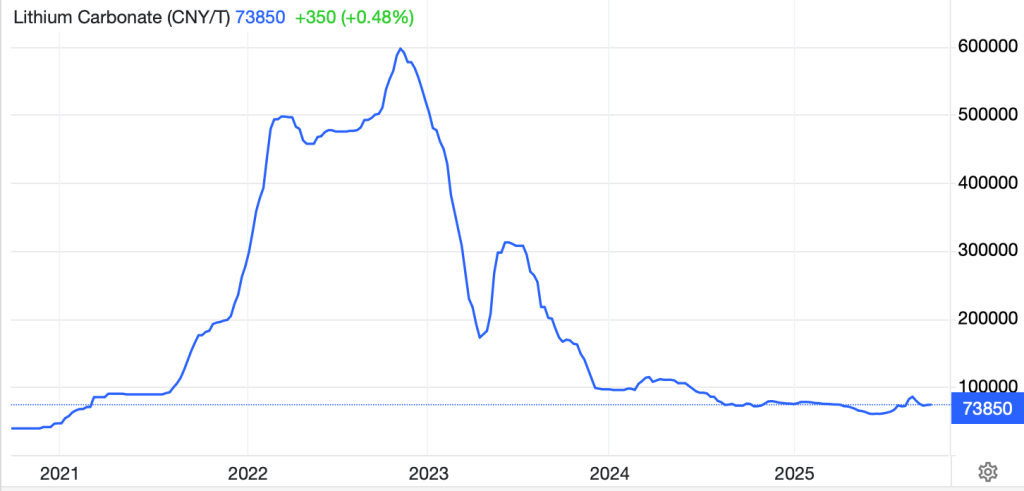 I feel strongly Li prices will rebound above 150,000 Chinese yuan/tonne (vs. the late-2022 high of ~600,000 yuan) within two years. Note, 150,000 yuan is US$21,090. Is a rebound to just 25% of the former high an aggressive call?